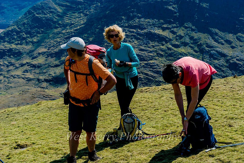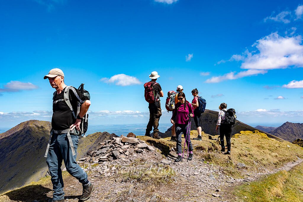 From Caher there is a change in direction to the West and a short descent before the final climb of the day to Caher West (975m) which will involve a short section of easy scrambling and some exposure.