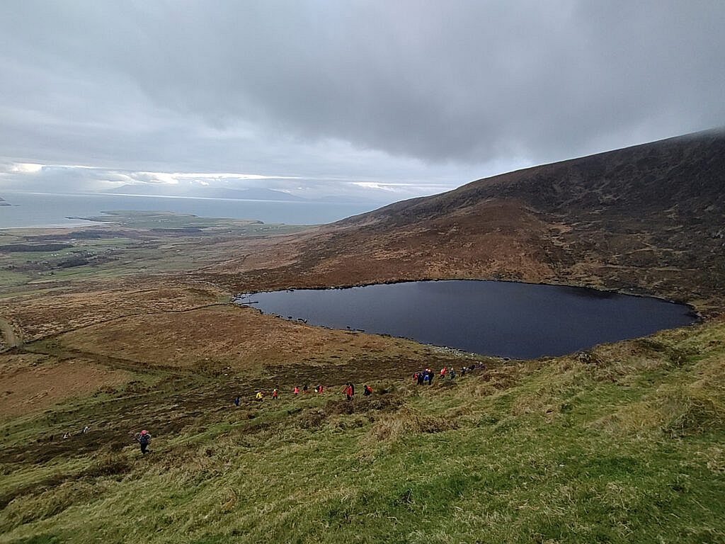 of the path above the lake, we join the bog road that will lead us to the summit of Sliabh an